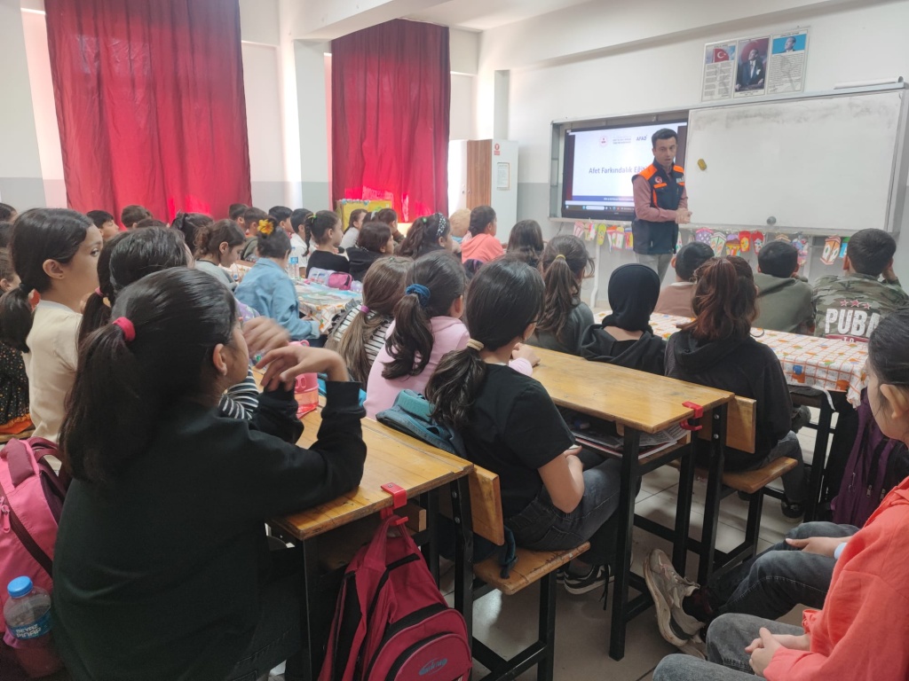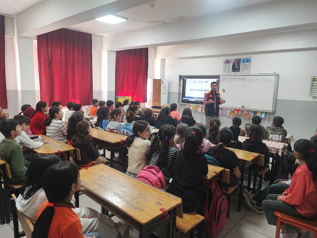 Batman İl Afet ve Acil Durum Müdürlüğü(AFAD) tarafından 4. sınıf öğrenci ve öğretmenlerimize afet sırasında doğru davranış biçimleri hakkında bilgi verildi. Eğitimlerde, deprem anında nasıl hareket edilmesi gerektiği, güvenli alanların belirlenmesi ve tahliye sürecinin önemi anlatıldı. Öğrencilere, olası bir afet anında hayat kurtarabilecek bilgiler aktarılırken, risklerin minimize edilmesi için alınması gereken önlemler de uygulamalı olarak gösterildi.